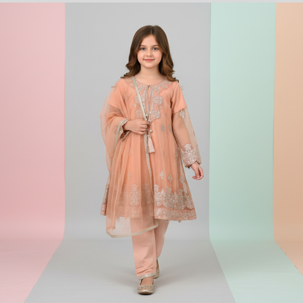 Paired with a soft tissue dupatta, adding a delicate and flowy finish to the look.