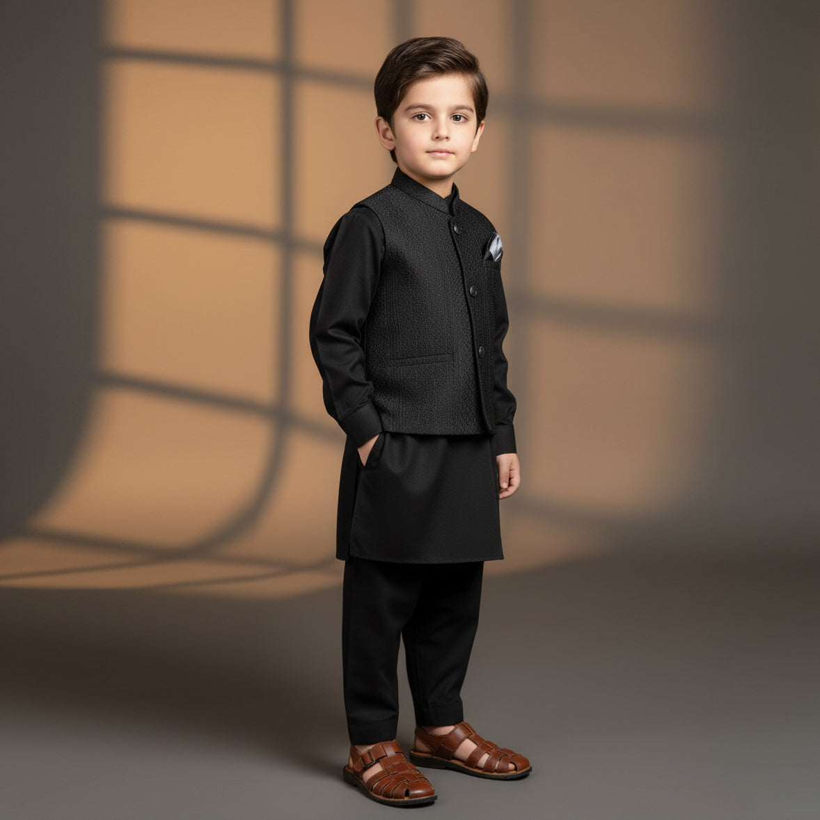 This boys’ shalwar kameez is crafted from premium washing wear fabric, offering softness, durability, and easy care for daily to festive use.