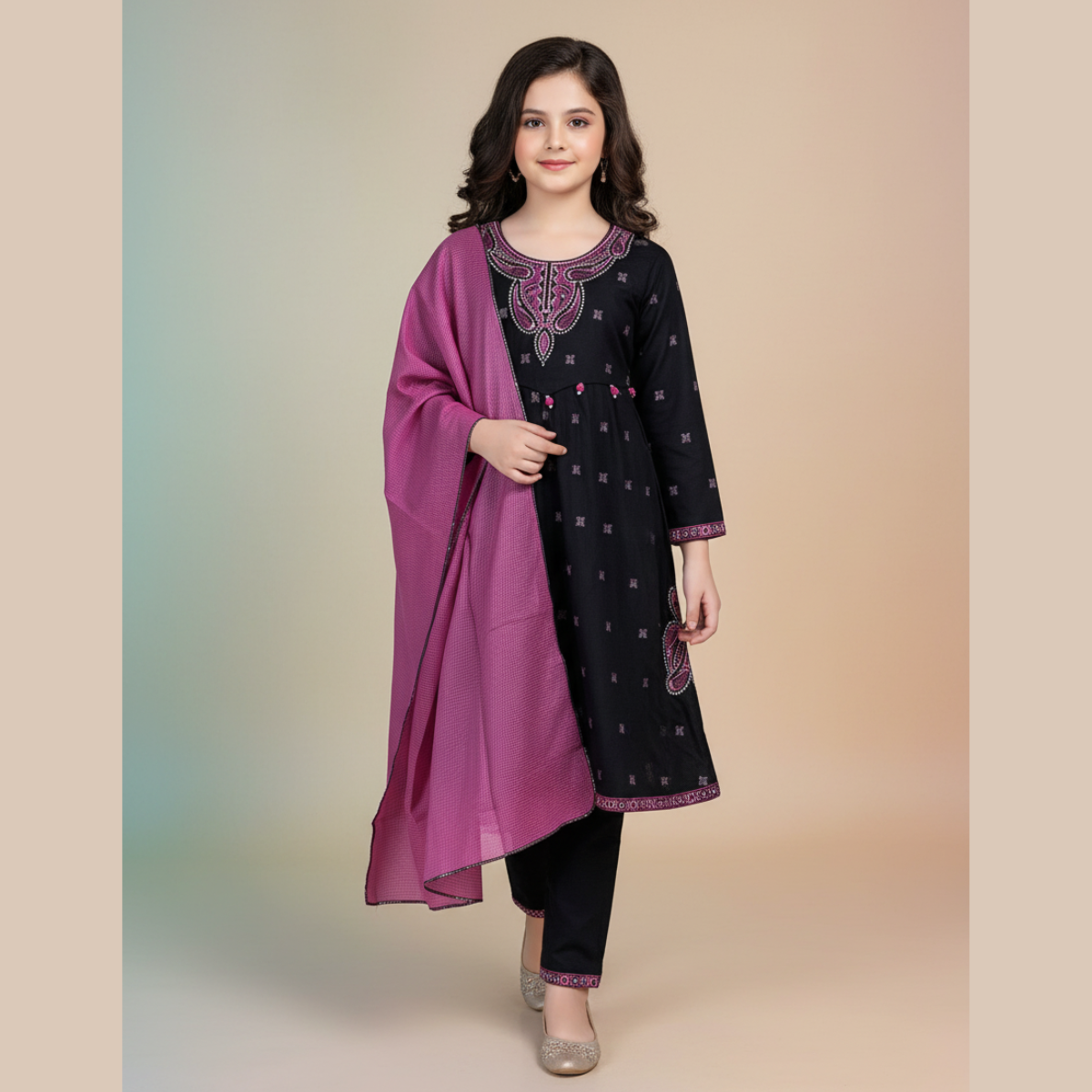 A stylish fine lawn 3-piece outfit designed with intricate embroidery on the kameez.